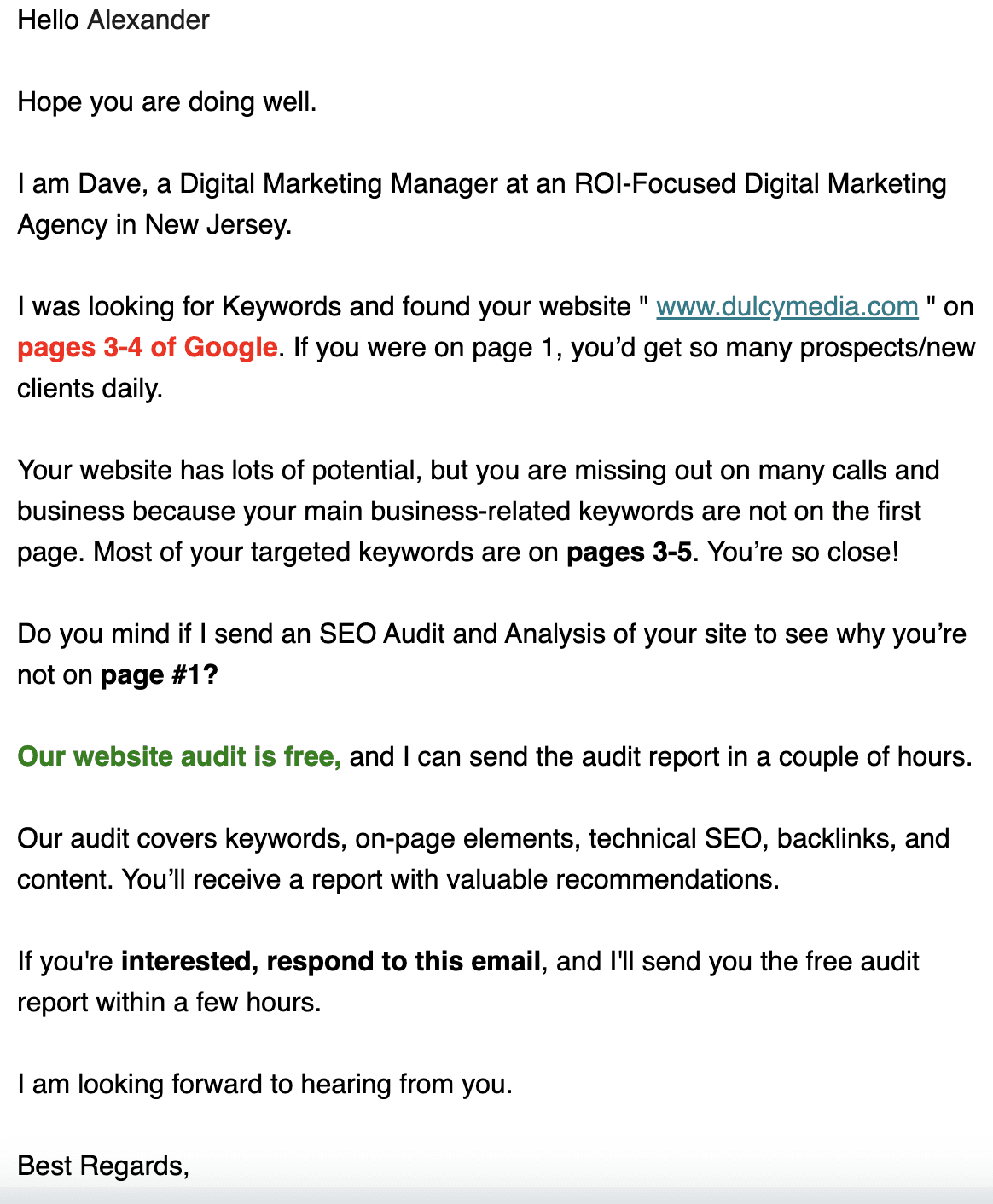 If this is something you are interested in, then allow me to send you a NO- OBLIGATION AUDIT REPORT.